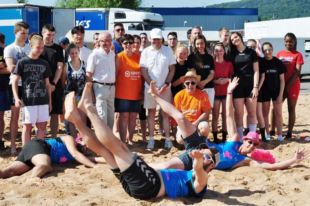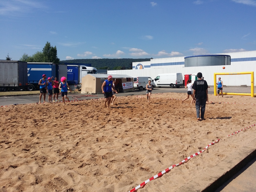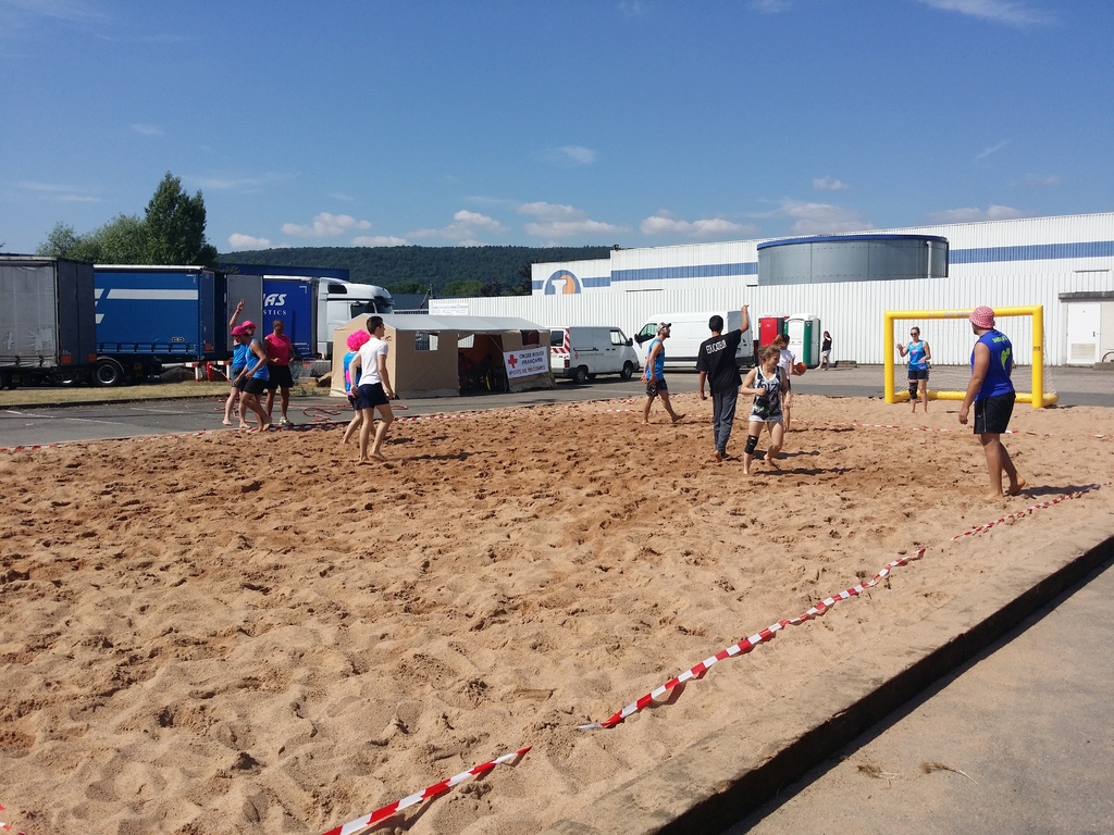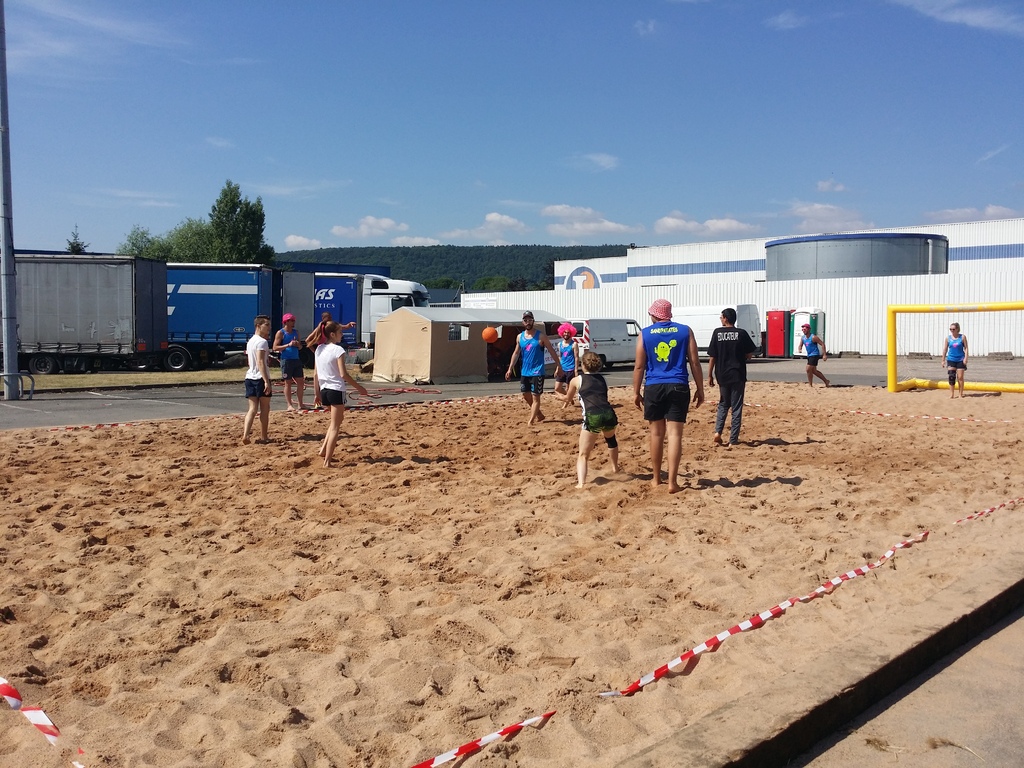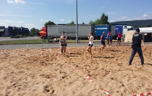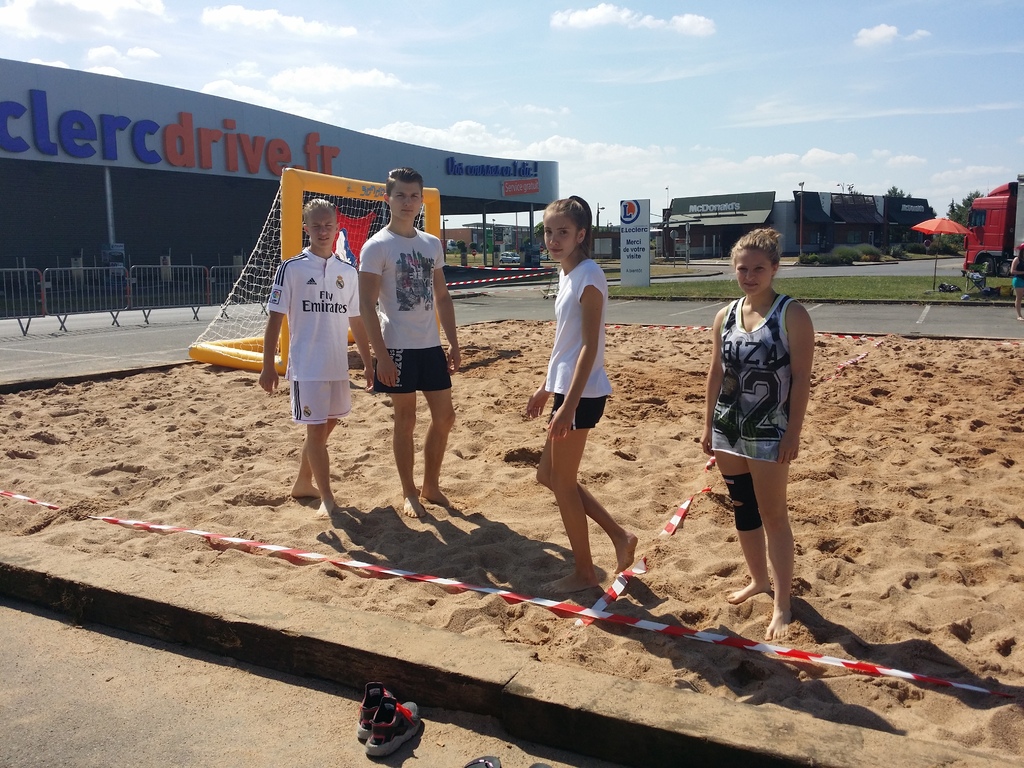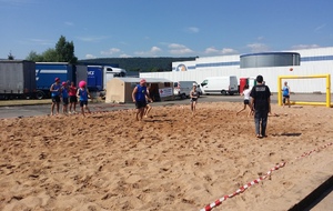 Participation du Judo Club de Serémange au Tournoi de Sandball: Lola, Lise, Alexia, Fabien, Axel, Marc et Lucas.